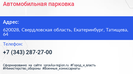 Автомобильная парковка по адресу 620028, Свердловская область, Екатеринбург, Татищева, 64 в дальнейшем Организация, размещена в следующих категориях: