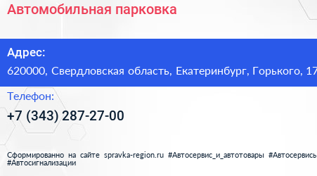 Автомобильная парковка по адресу 620000, Свердловская область, Екатеринбург, Горького, 17 в дальнейшем Организация, размещена в следующих категориях: