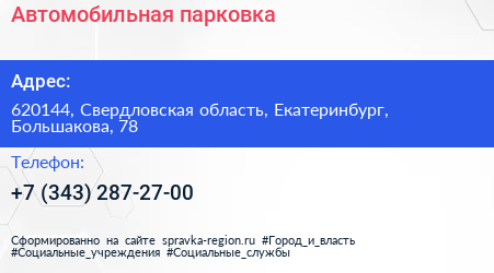 Автомобильная парковка по адресу 620144, Свердловская область, Екатеринбург, Большакова, 78 в дальнейшем Организация, размещена в следующих категориях: