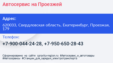 Автосервис на Проезжей по адресу 620033, Свердловская область, Екатеринбург, Проезжая, 179 в дальнейшем Организация, размещена в следующих категориях: