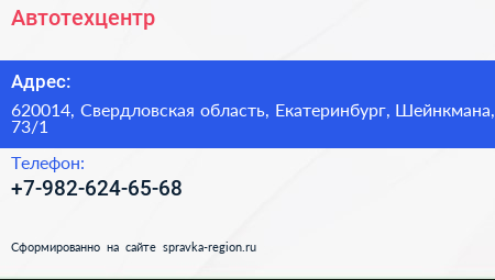 Автотехцентр по адресу 620014, Свердловская область, Екатеринбург, Шейнкмана, 73/1 в дальнейшем Организация, размещена в следующих категориях: