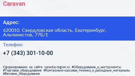 Caravan по адресу 620010, Свердловская область, Екатеринбург, Альпинистов, 77Б/1 в дальнейшем Организация, размещена в следующих категориях: