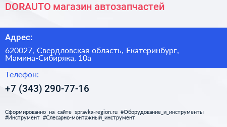 DORAUTO, магазин автозапчастей по адресу 620027, Свердловская область, Екатеринбург, Мамина-Сибиряка, 10а в дальнейшем Организация, размещена в следующих категориях: