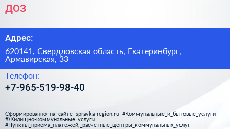ДОЗ по адресу 620141, Свердловская область, Екатеринбург, Армавирская, 33 в дальнейшем Организация, размещена в следующих категориях:
