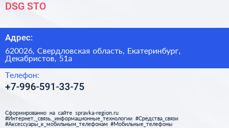 DSG-STO по адресу 620026, Свердловская область, Екатеринбург, Декабристов, 51а в дальнейшем Организация, размещена в следующих категориях: