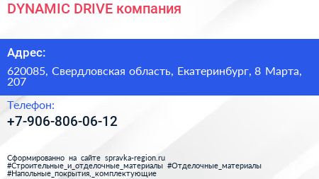 DYNAMIC DRIVE, компания по адресу 620085, Свердловская область, Екатеринбург, 8 Марта, 207 в дальнейшем Организация, размещена в следующих категориях: