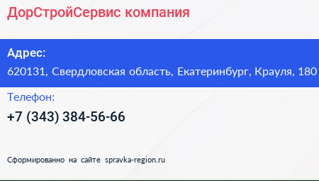 ДорСтройСервис, компания по адресу 620131, Свердловская область, Екатеринбург, Крауля, 180 в дальнейшем Организация, размещена в следующих категориях: