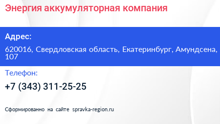 Энергия, аккумуляторная компания по адресу 620016, Свердловская область, Екатеринбург, Амундсена, 107 в дальнейшем Организация, размещена в следующих категориях: