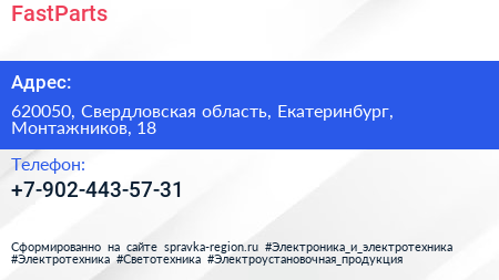 FastParts по адресу 620050, Свердловская область, Екатеринбург, Монтажников, 18 в дальнейшем Организация, размещена в следующих категориях: