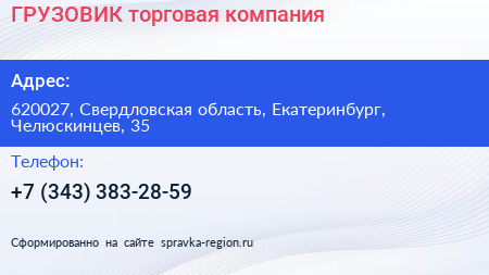 ГРУЗОВИК, торговая компания по адресу 620027, Свердловская область, Екатеринбург, Челюскинцев, 35 в дальнейшем Организация, размещена в следующих категориях: