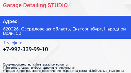 Garage Detailing STUDIO по адресу 620026, Свердловская область, Екатеринбург, Народной Воли, 52 в дальнейшем Организация, размещена в следующих категориях: