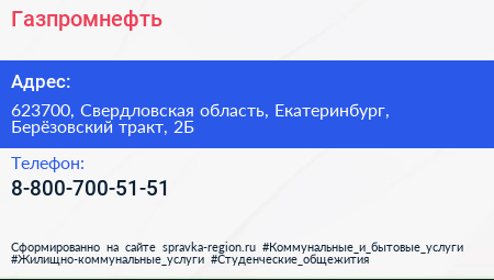 Газпромнефть по адресу 623700, Свердловская область, Екатеринбург, Берёзовский тракт, 2Б в дальнейшем Организация, размещена в следующих категориях: