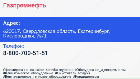 Газпромнефть по адресу 620017, Свердловская область, Екатеринбург, Кислородная, 7а/1 в дальнейшем Организация, размещена в следующих категориях: