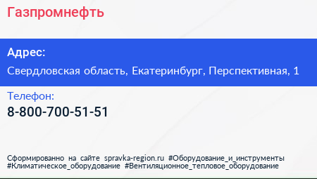 Газпромнефть по адресу Свердловская область, Екатеринбург, Перспективная, 1 в дальнейшем Организация, размещена в следующих категориях: