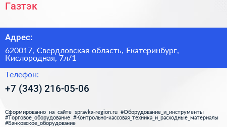 Газтэк по адресу 620017, Свердловская область, Екатеринбург, Кислородная, 7л/1 в дальнейшем Организация, размещена в следующих категориях: