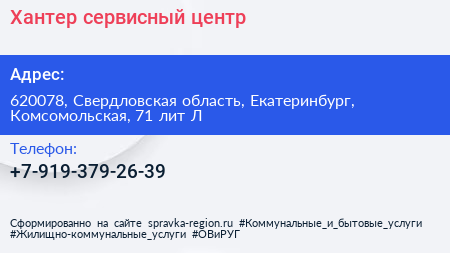 Хантер, сервисный центр по адресу 620078, Свердловская область, Екатеринбург, Комсомольская, 71 лит Л в дальнейшем Организация, размещена в следующих категориях: