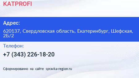 KATPROFI по адресу 620137, Свердловская область, Екатеринбург, Шефская, 2Б/2 в дальнейшем Организация, размещена в следующих категориях: