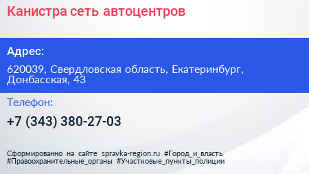 Канистра, сеть автоцентров по адресу 620039, Свердловская область, Екатеринбург, Донбасская, 43 в дальнейшем Организация, размещена в следующих категориях: