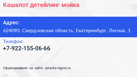 Кашалот, детейлинг-мойка по адресу 624090, Свердловская область, Екатеринбург, Лесная, 1 в дальнейшем Организация, размещена в следующих категориях: