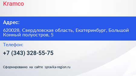 Kramco по адресу 620028, Свердловская область, Екатеринбург, Большой Конный полуостров, 5 в дальнейшем Организация, размещена в следующих категориях: