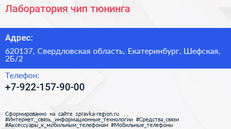 Лаборатория чип-тюнинга по адресу 620137, Свердловская область, Екатеринбург, Шефская, 2Б/2 в дальнейшем Организация, размещена в следующих категориях: