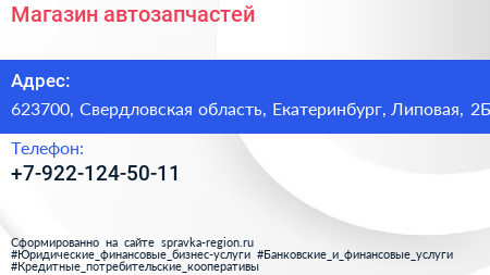Магазин автозапчастей по адресу 623700, Свердловская область, Екатеринбург, Липовая, 2Б в дальнейшем Организация, размещена в следующих категориях: