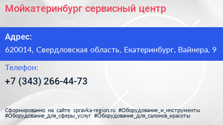 Мойкатеринбург, сервисный центр по адресу 620014, Свердловская область, Екатеринбург, Вайнера, 9 в дальнейшем Организация, размещена в следующих категориях: