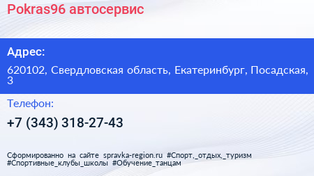 Pokras96, автосервис по адресу 620102, Свердловская область, Екатеринбург, Посадская, 3 в дальнейшем Организация, размещена в следующих категориях: