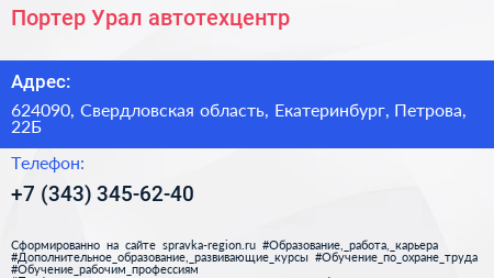 Портер Урал, автотехцентр по адресу 624090, Свердловская область, Екатеринбург, Петрова, 22Б в дальнейшем Организация, размещена в следующих категориях: