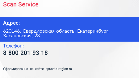 Scan Service по адресу 620146, Свердловская область, Екатеринбург, Хасановская, 23 в дальнейшем Организация, размещена в следующих категориях: