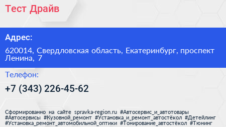 Тест-Драйв по адресу 620014, Свердловская область, Екатеринбург, проспект Ленина, 7 в дальнейшем Организация, размещена в следующих категориях: