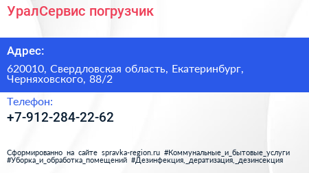 УралСервис погрузчик по адресу 620010, Свердловская область, Екатеринбург, Черняховского, 88/2 в дальнейшем Организация, размещена в следующих категориях: