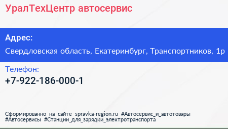 УралТехЦентр, автосервис по адресу Свердловская область, Екатеринбург, Транспортников, 1р в дальнейшем Организация, размещена в следующих категориях: