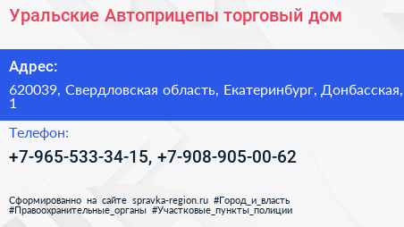 Уральские Автоприцепы, торговый дом по адресу 620039, Свердловская область, Екатеринбург, Донбасская, 1 в дальнейшем Организация, размещена в следующих категориях: