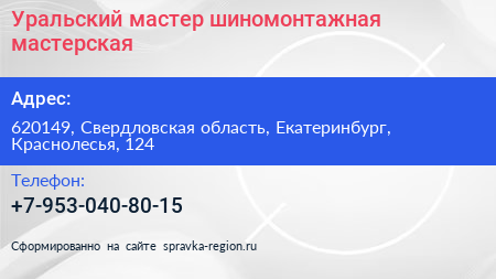 Уральский мастер, шиномонтажная мастерская по адресу 620149, Свердловская область, Екатеринбург, Краснолесья, 124 в дальнейшем Организация, размещена в следующих категориях: