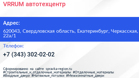 VRRUM, автотехцентр по адресу 620043, Свердловская область, Екатеринбург, Черкасская, 22а/1 в дальнейшем Организация, размещена в следующих категориях: