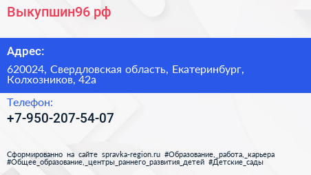 Выкупшин96.рф по адресу 620024, Свердловская область, Екатеринбург, Колхозников, 42а в дальнейшем Организация, размещена в следующих категориях: