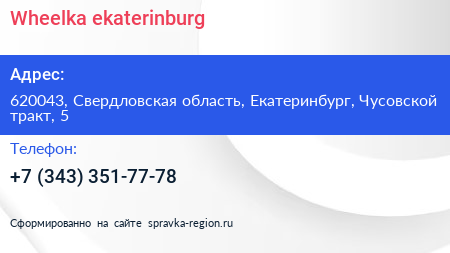 Wheelka ekaterinburg по адресу 620043, Свердловская область, Екатеринбург, Чусовской тракт, 5 в дальнейшем Организация, размещена в следующих категориях: