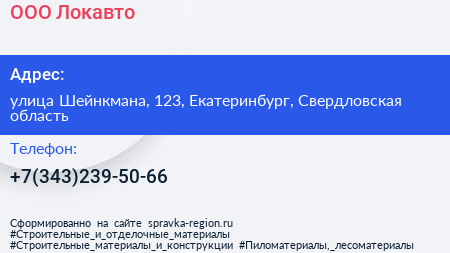 ООО «Локавто» по адресу улица Шейнкмана, 123, Екатеринбург, Свердловская область в дальнейшем Организация, размещена в следующих категориях:
