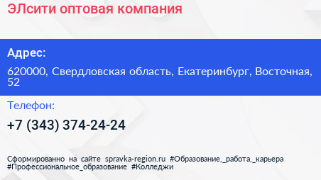 ЭЛсити, оптовая компания по адресу 620000, Свердловская область, Екатеринбург, Восточная, 52 в дальнейшем Организация, размещена в следующих категориях: