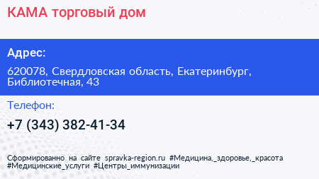 КАМА, торговый дом по адресу 620078, Свердловская область, Екатеринбург, Библиотечная, 43 в дальнейшем Организация, размещена в следующих категориях: