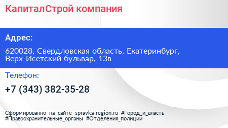 КапиталСтрой, компания по адресу 620028, Свердловская область, Екатеринбург, Верх-Исетский бульвар, 13в в дальнейшем Организация, размещена в следующих категориях: