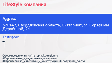 LifeStyle, компания по адресу 620149, Свердловская область, Екатеринбург, Серафимы Дерябиной, 24 в дальнейшем Организация, размещена в следующих категориях: