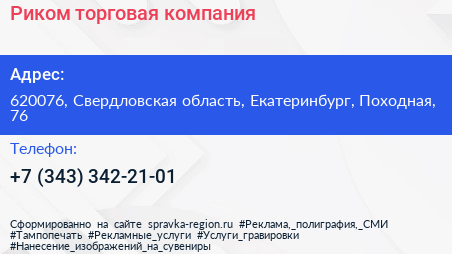 Риком, торговая компания по адресу 620076, Свердловская область, Екатеринбург, Походная, 76 в дальнейшем Организация, размещена в следующих категориях:
