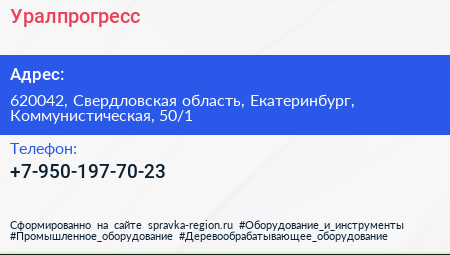 Уралпрогресс по адресу 620042, Свердловская область, Екатеринбург, Коммунистическая, 50/1 в дальнейшем Организация, размещена в следующих категориях:
