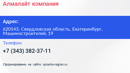 Алмалайт, компания по адресу 620143, Свердловская область, Екатеринбург, Машиностроителей, 19 в дальнейшем Организация, размещена в следующих категориях: