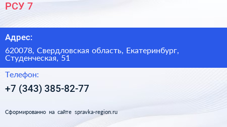 РСУ-7 по адресу 620078, Свердловская область, Екатеринбург, Студенческая, 51 в дальнейшем Организация, размещена в следующих категориях: