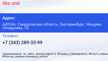Sks-ural по адресу 620146, Свердловская область, Екатеринбург, Начдива Онуфриева, 55 в дальнейшем Организация, размещена в следующих категориях: