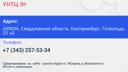 УНТЦ-Эт по адресу 620034, Свердловская область, Екатеринбург, Готвальда, 21 к2 в дальнейшем Организация, размещена в следующих категориях:
