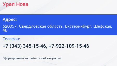 Урал-Нова по адресу 620057, Свердловская область, Екатеринбург, Шефская, 4Б в дальнейшем Организация, размещена в следующих категориях: